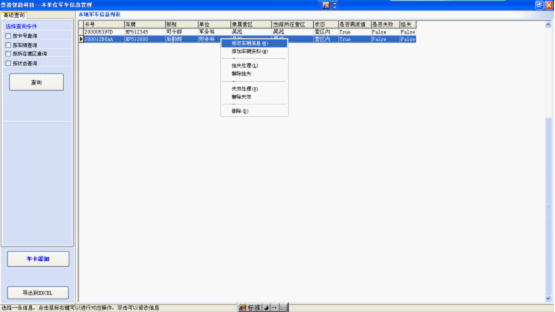 在該頁面,可以對已經(jīng)添加的車輛信息進(jìn)行修改或者新增車卡信息,在頁面,點(diǎn)擊所鼠標(biāo)右鍵,如下